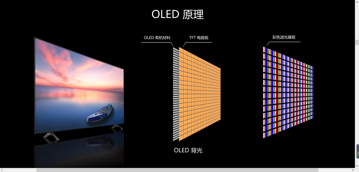 虽然QLED和OLED名字相似,但却是不同的技术。简单来说,QLED电视是LED电视的一种,它们使用量子点技术来提高关键图像的显示质量,能够提供更好的亮度和更广的色谱。而OLED电视则是通过有机物通电自发光,可以做到点阵控光,直接打到彩色的滤光板成像,能够显示更加纯粹的黑色。