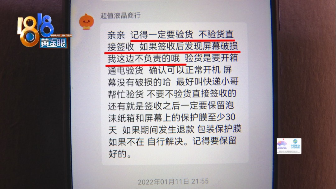 1月8号,杭州崇贤的沈先生在网上买了一台电视机,他说想买创维品牌的,送货上门后发现电视机有点像三无产品。 淘宝上这家店叫“高端品牌电视”,沈先生在店里买了一台100寸液晶电视机,价格是4539块钱。  沈先生:“点了创维的品牌,相当于店铺一样的,然后我进去了,我认为是创维的电视。” 这家网店只上架了三款电视机,都没有提到创维两个字。  沈先生反复操作,也无法还原当初是怎么找到这家店的。当初卖家是这样描述商品的,电视机品牌是一串S开头的字母,然后提到“创维4K屏幕”。  卖家还特别提醒:“一定要验货,不验货直接签收,发现屏幕破损,我这边不负责的。”1月11号,电视机送到家里,沈先生没有验货。  沈先生:“送货过来,当时我老婆在家,我人不在。因为我老婆她一个人没法试,当时快递小哥,把这个电视,直接放到家里了。” 1月14号,卖家安排师傅上门安装,沈先生说,通电以后发现屏幕有问题,就把电视机重新装到包装箱里。记者看一下了,包装上面没有磕碰的痕迹。沈先生再次拆开包装。  沈先生:“拿出来就是这样的,然后通电之后,发现这里有个口子,这里面的屏幕是有点裂了,我可以把它撕掉的。”  沈先生撕开塑料包装,电视机屏幕上有块痕迹,摸起来是粗糙的。  安装师傅:“他们卖出去的东西,安装公司叫我们过去安装的。当时是我跟他一起拆的,拆开以后通电就发现屏幕中间,有一个黑点一样的东西,这个什么原因,我也不好说,应该说,肯定是出厂就有的。”  对此,卖家这样回复:你这明显是尖锐的东西碰到的,里面屏幕完好,也不耽误正常使用。你电视机签收以后,自己用东西顶到了,还有这样的?沈先生说,屏幕破损的问题可以先放一放,因为他又发现了更加难以接受的问题。  沈先生:“后面我又一看又不对,这个包装上面,品牌什么都没有,包括说明书这些,也没有品牌。”  记者检查了包装箱、说明书和售后服务保证卡,都没有找到产品名称、厂家名称、地址、联系方式等信息。  只是在电视机身上有一串S开头的字母,和先前商家介绍的一样。对比创维天猫官方旗舰店的商标,两个标志上,只有一个字母不同。  沈先生认为他买到了山寨电视机,他再次联系卖家,卖家表示在开车。记者表明身份后,卖家通过文字表示,“用的中性发货包装,店铺是有资质的。”至于当初宣称的“创维4K屏幕”,卖家称是创维同款屏幕。  沈先生拍下的商品,已经过期不存在。记者查看了另外三款电视机的链接,页面中提到,这款电视机的品牌是lgkj。  随后,卖家提供了相应的商标注册证,显示注册人是广州市松华电子科技有限公司,卖家还提供了质检报告。    沈先生认为,店铺的宣传存在误导,他情况反映给了平台客服。 淘宝客服:“平台是非常重视假货的问题,对于假货是零容忍,只要核实到商家确实存在这样的问题,都会进行相应的处罚和下架,你上传的凭证,也会由平台的维权人员帮您处理,快的话也就是一到三天。”  (1818黄金眼)