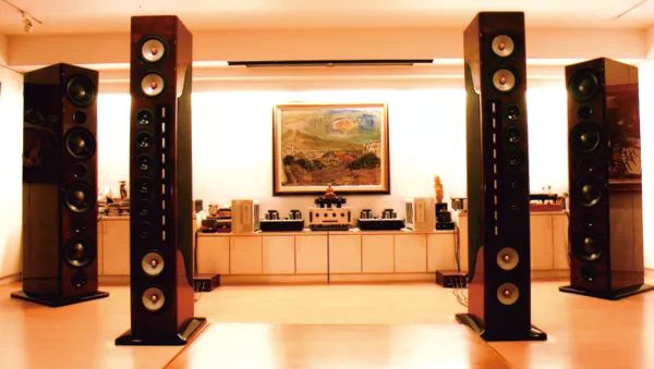 ①超级动态。我们希望扬声系统能一如音乐厅无拘无束的挥洒声音,也就是没有丝毫压缩感觉的动态,从极细声(ppp)到至最强音(fff),不论音量多小或多大,从极高频到极低频频域内之乐器或人声永远有一如真实的动态,因此乐声的细微变化或乐器的形体大小能保持清晰正确,不会无端夸张或变形。上述几对四件式巨无霸均能稳若泰山,指挥若定,君临天下,聆者臣服。听者完全不会遗漏点滴,也不用担心崩溃。