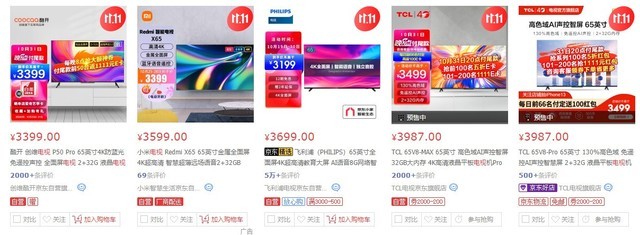 “硬指标”决定画面下限,也决定着价格下限 拿同为65吋的一众产品来说,昂贵的电视可以接近2万元,而便宜的只要3、4千元,这其中的差距,最根本的就是显示面板的材质,我们可以将这个因素归纳进“硬指标”,面板类型决定着画面素质的下限,也决定着价格的下限。