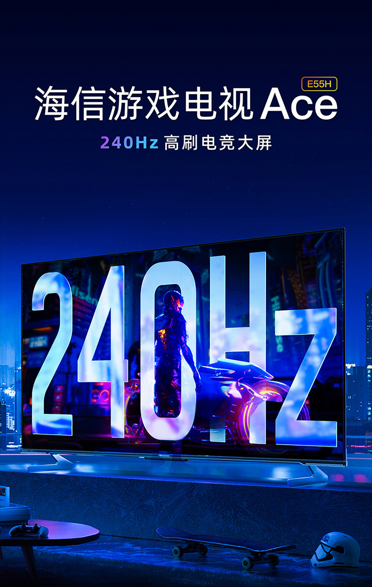 3 月 12 日消息,海信刚发布了一款游戏电视 Ace 2023 款 65E55H,支持 240Hz 高刷 + MEMC、U + 超画质引擎 2.0、130% 色域、杜比音画、2.7ms 游戏延时、178° 广视角、HDMI2.1xVRR、WiFi6 等卖点,此前宣布 3 月 14 日开启预售但不知道为什么现在就已经开启预售。