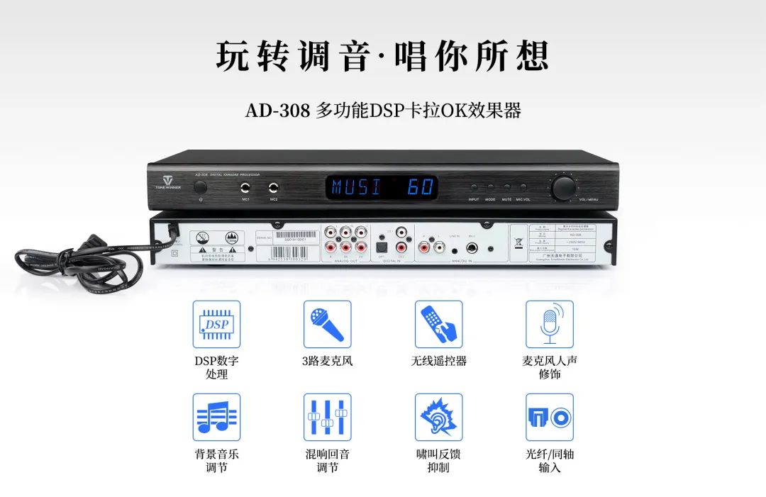 当前热销的天逸AD-208、AD-308多功能DSP卡拉OK效果器、AD-200K,AD-300K多功能卡拉OK功放等产品将继续扛起这面英雄的旗帜,长期征战于中国卡拉OK市场。同时,DSP数字处理、啸叫抑制、话筒独立效果、EQ数字均衡调节等先进音频处理技术的运用,将进一步提升用户对效果追求的满意度,提高产品专业度。
