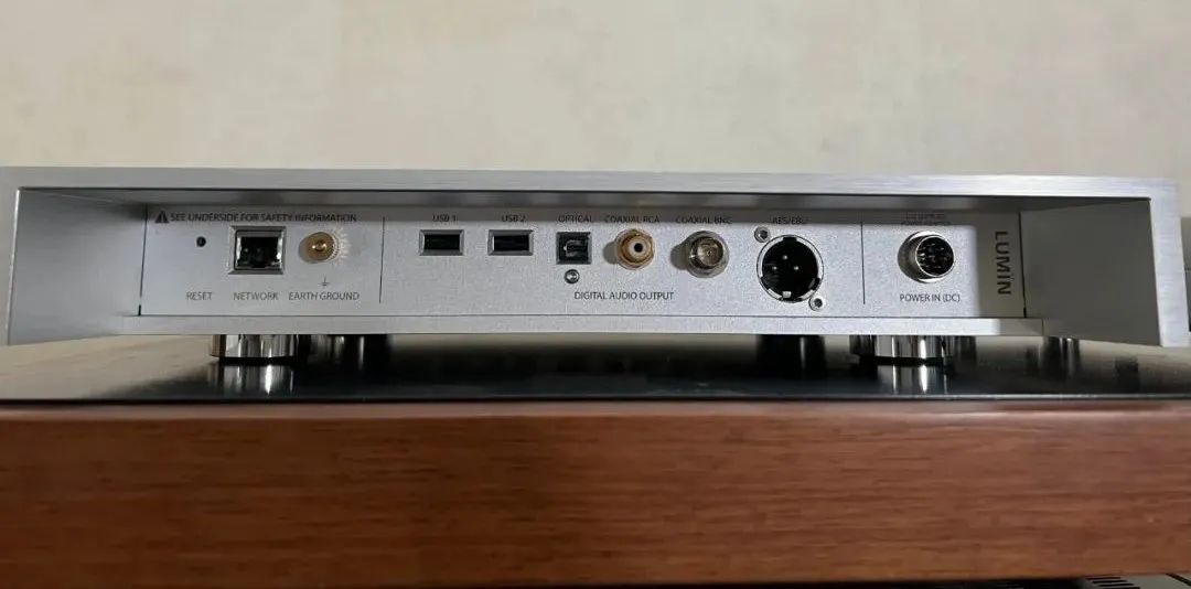 屁股接口大致可以得知功能,两个USB接口,做高品质音源输出,也可以接硬盘、U盘等存储介质读取音乐文件使用,看网上的拆机图,我发现Lumin U1的USB数字方案,好像并非使用现成的类似XMOS模块方案?并不是有个电路模块,和主板独立,通过线材连接,而是本身就在主板上,当然这个只是猜测,如果USB部分是全自研,那技术实力可以说是立刻马上凌驾于大多数hifi解码器厂家了,而且这研发成本,也是要贵的超出小众行业范畴了。