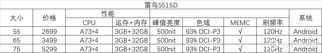 ②屏幕:画质体验画质参数在这个价位真的是没什么太多选择,主要关注3个参数:亮度、MEMC、刷频率: 峰值亮度/色域:决定画质感官效果,特别是在较为昏暗的画面以及强光下观看电视,对观感影响较大,电视领域峰值亮度越高越好,3000内的电视,亮度峰值都在200-500nit区间。至于色域,差异不大,能达到观看要求。 MEMC和刷频率:MEMC也就是运动补偿技术,可以将低帧率提升到高帧率,播放更流畅,但同样可能造成变速、图像扭曲的问题,是否开启看自己选择。刷频率分60HZ和120HZ,120HZ是高端电视必备,配合MEMC可比较好的防抖。