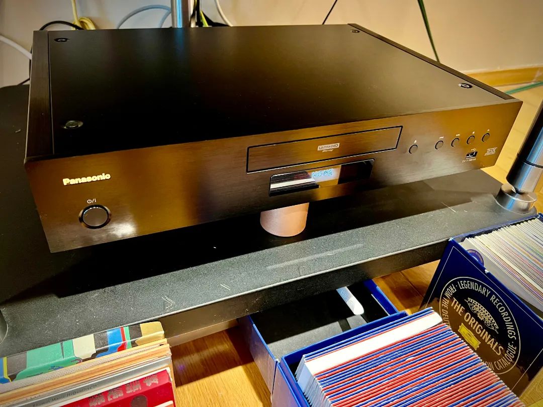 7、问:为什么选了松下的蓝光机? Mr.L:之前用的是一台先锋55的蓝光机做转盘。后来因为更换了4K电视机,所以就换成了松下的4K蓝光机。因为ATC合并机有解码功能,所以只有转盘即可听CD碟片,另外我喜欢看音乐类的碟片,所以松下蓝光就很实用了,而且偶尔也会听一下SACD(不过SACD要在蓝光机解码)。选择松下蓝光机,可以说影音都兼顾了。