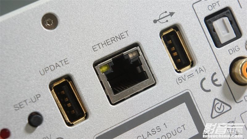 背板上有两个USB Type-A接口,一个用于软件升级,另一个用于读取USB存储设备里的音乐