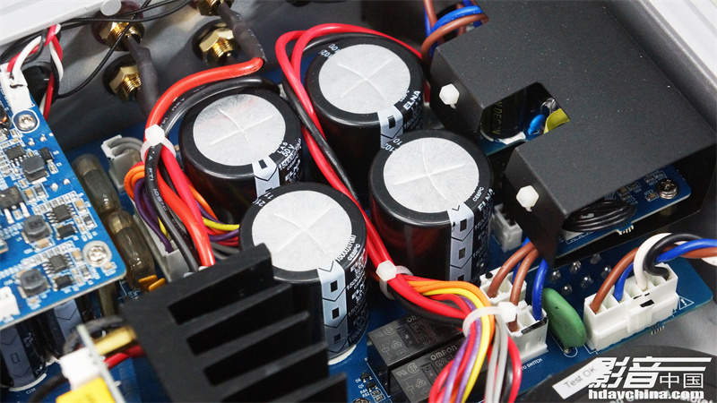 滤波电容采用ELNA的产品,一共使用4只,每只的容量为15000微法,合共60000微法