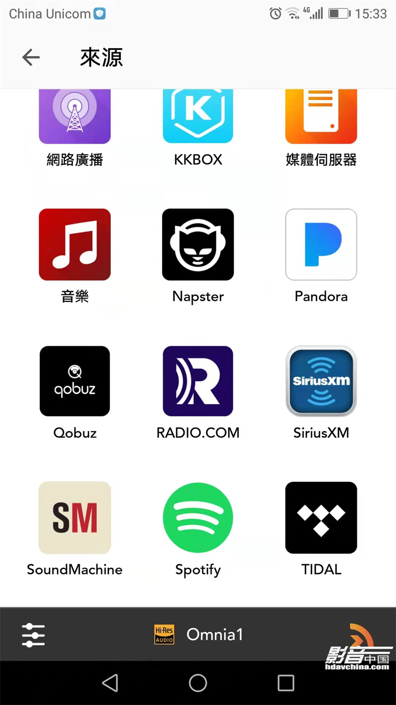 Omnia使用DTS Play-Fi App,可以播放NAS里面的音乐,DTS Play-Fi App本身也自带多个流媒体平台的接口