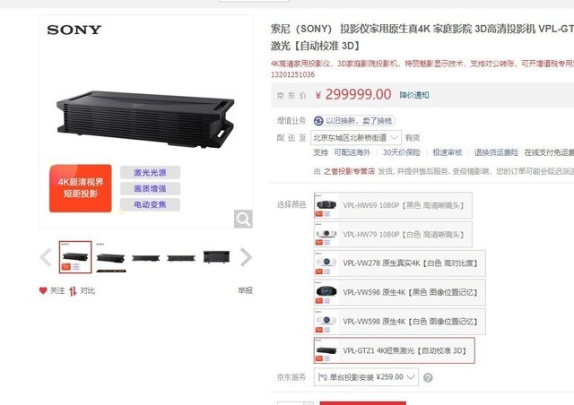 [其它] 买不起看看 索尼4K激光电视30万元在售 |
