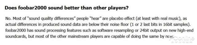 官方的Q&A表明,Foobar2000并不能提高音质,人们听到音质提高只是脑放YY而已