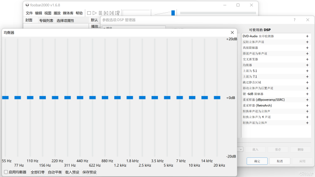 Foobar 2000支持均衡器等DSP音效处理,的确可以让声音不一样,但很多人分不清音质和音效