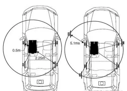 音响之间的间距是声场中心声像定位之间的一种平衡,但一般汽车音响的喇叭的位置是固定不变的,人们感受声场信息正是通过“强度立体声法”和相位差(时间差)法来确定正确声像定位的。