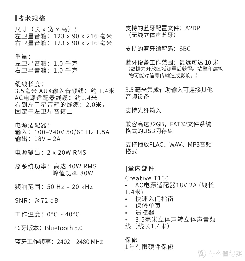创新T100无线蓝牙5.0桌面音箱推荐理由:40W大功率,蓝牙、光纤、3.5mm多音源输入,支持USB解码,可以脱离电脑播放音乐,红外遥控。