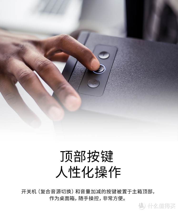 小巧身材,节省空间×小巧身材,节省空间 前面板设计了音量调节旋钮,方便随时调节音量。 总结:以小搏大,小身材大能量。小桌面用户适用。 备选方案:千元内暂无。