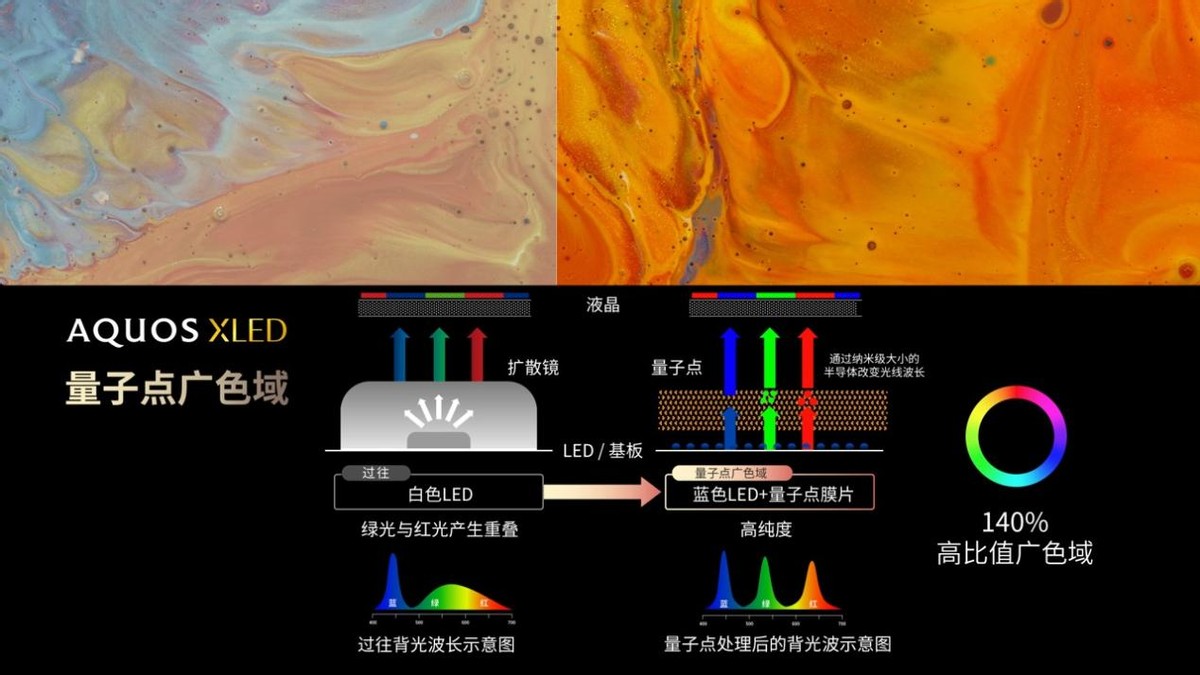 在主动式Active Mini LED技术的驱动下,AQUOS XLED相比传统液晶电视峰值亮度得到3倍提升,最高可达1800nits,即使在极暗条件下,景物也能清晰呈现。并且,在夏普的解决方案下,2160背光分区将得到完美驱动。全新的夏普量子点广色域技术,可以还原大自然最纯粹的红绿蓝三原色,真实美景近在眼前。
