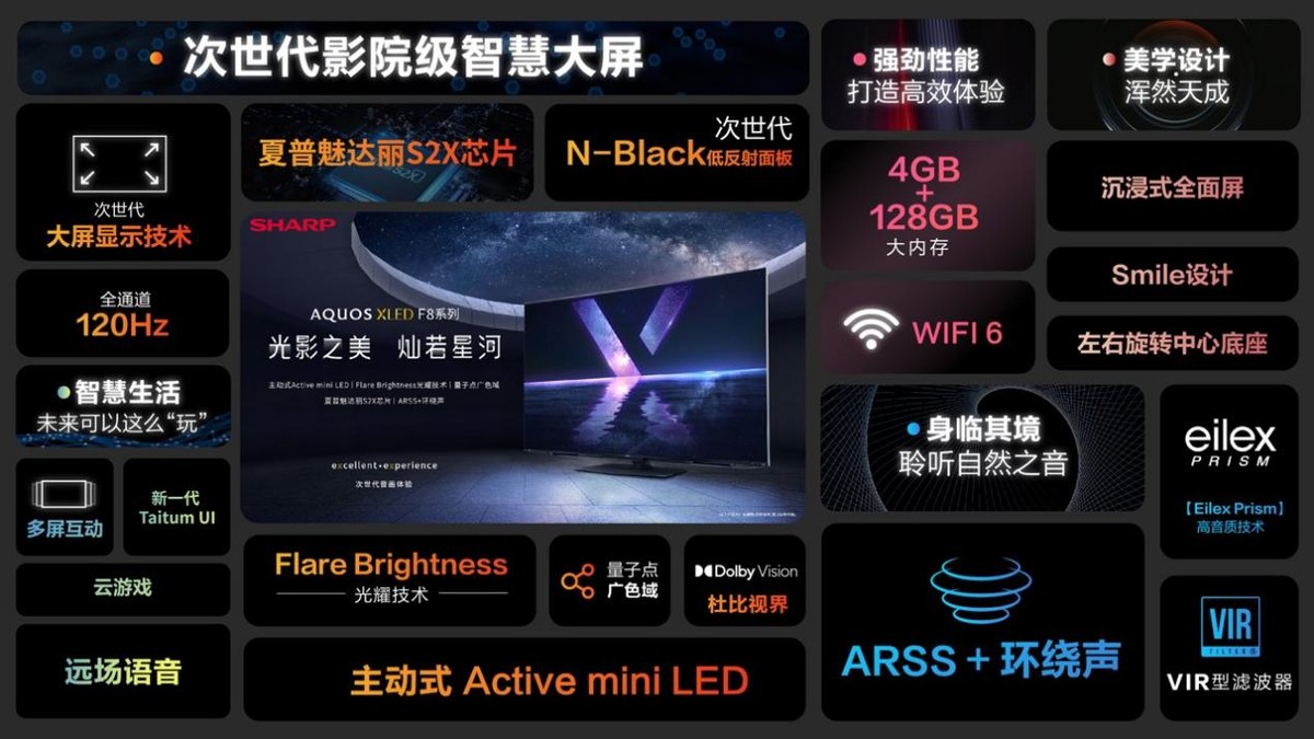 AQUOS品牌诞生至今已经21年,一直是夏普尖端科技的代名词,拥有液晶、Mini LED等绝大多数行业先进技术,并推出过众多具有划时代意义的产品。AQUOS一直以大尺寸、极致音画和精致外观被全球用户青睐,而夏普AQUOS XLED系列将是全新的旗舰级产品。