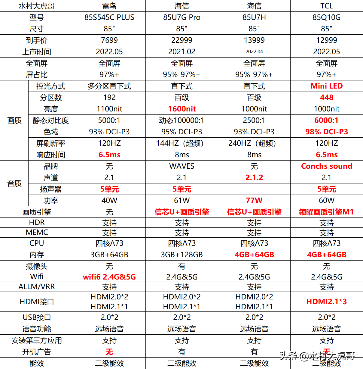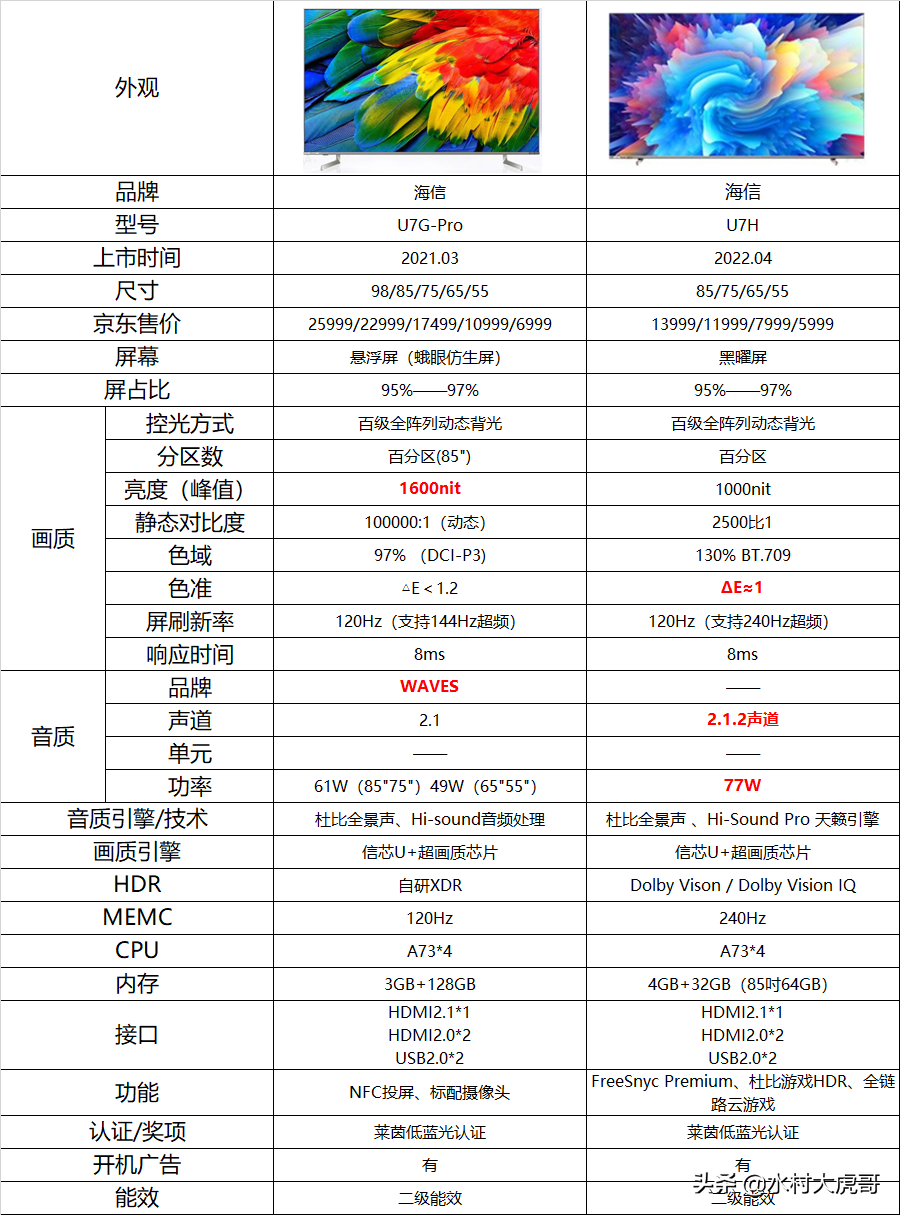 而开篇朋友私信问到的,就是某信的两款旗舰级产品,U7GPro和U7H系列。我现在正面回答一下这个问题,这两款产品就是某信,十来年两大杰出行业贡献“ULED+超高刷屏”的典型代表产品。都是业内响当当的“韭菜神器”,谁买谁SB!请看下图,几点忠告