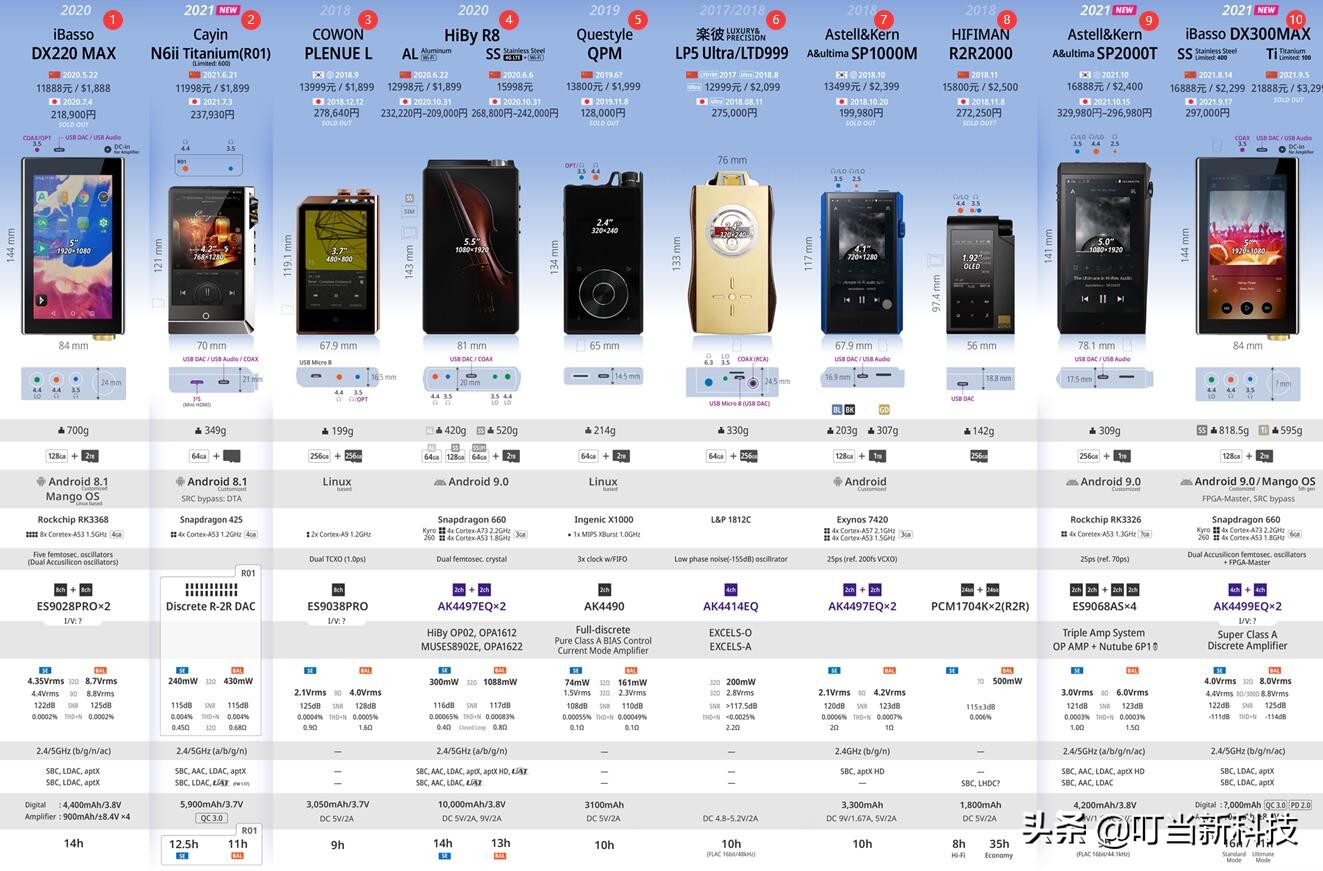 今天,我就来说说22款万元以上便携式DAP,看看它们都采用了哪些DAC芯片!我没有按照价格来分,而是按照采用的芯片来排列。