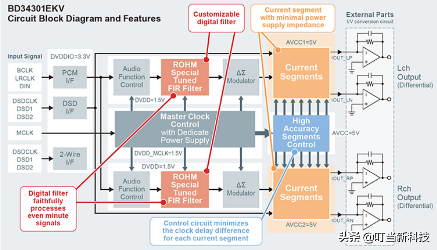 其在2021年2月推出了,作为旗舰机型开发的“MUS-IC”系列DAC芯片BD34301EKV,  BD34301EKV芯片