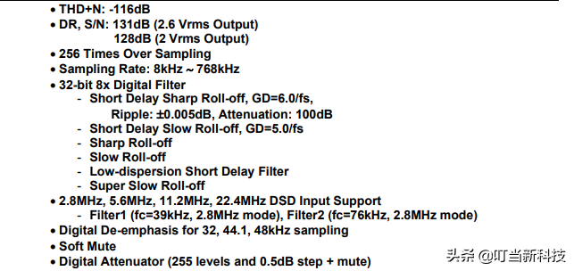 其指标相当惊人,音质效果也获得业界高度好评。 - THD+N:-115dB,信噪比:130dB
