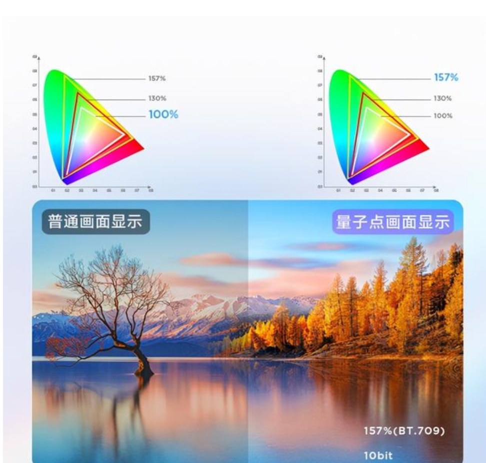 优点 背光基板依然由灯珠组成,使用寿命长。QLED量子点膜带来了更好的色彩准确度以及色彩容量,使屏幕的色域值可以轻松达到110%以上。