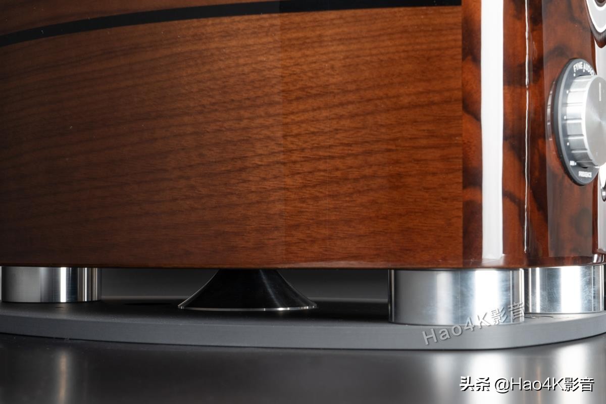 靠近仔细看,可以见得Fyne F1-8的做工相当精致,木工的收边、接合与整体组装的完成度非常高,通过不同材质制造出拼贴的效果,结合金属、木头、皮面、绒布,加上细致的手工与均匀的亮面处理,平添F1-8的高级感。红色胡桃木贴皮,展现出一种优雅的古典气质。
