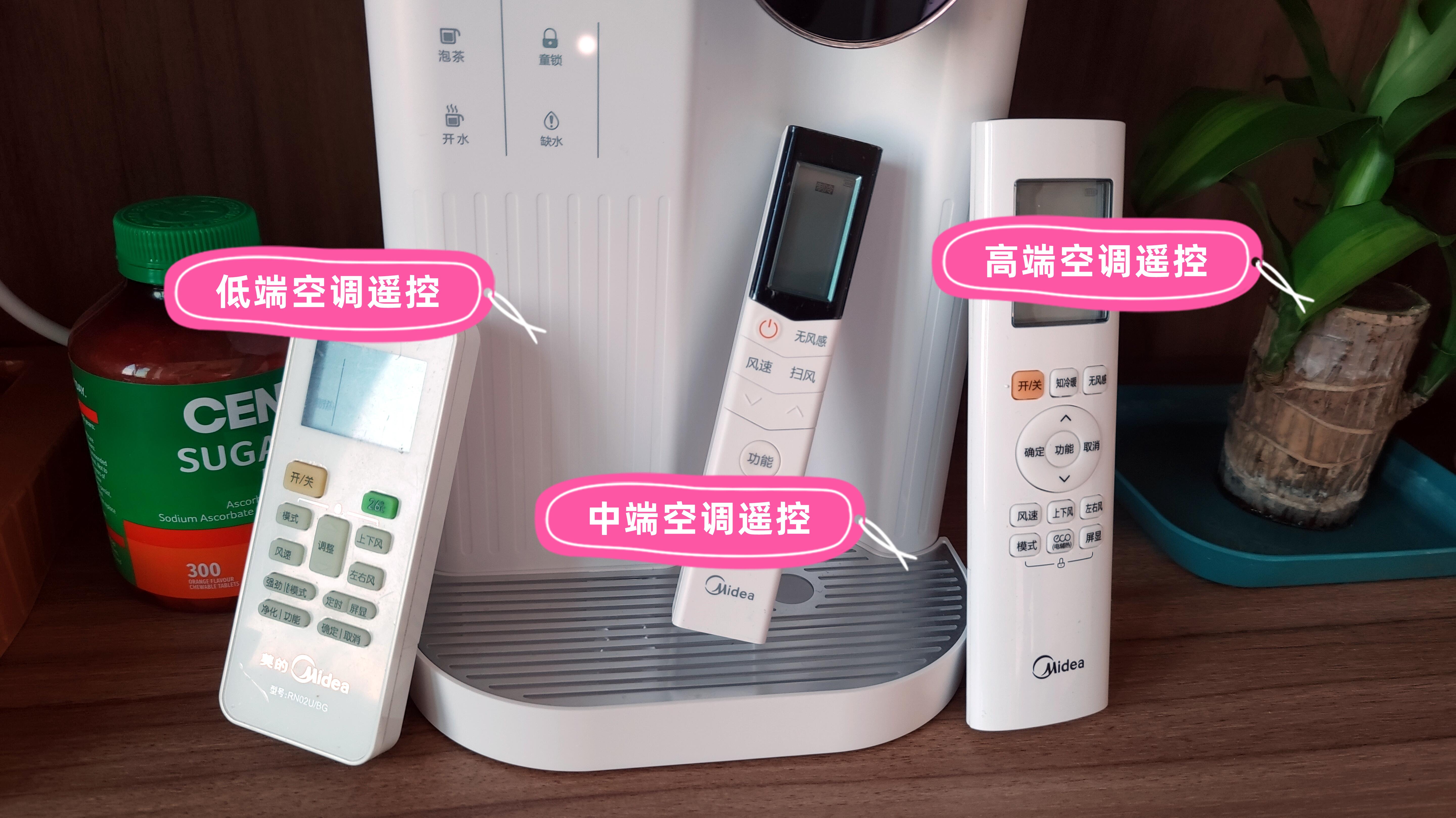 再说一个大家能看到的例子:我家碰巧买了同一个品牌,不同等级的三台空调。这三台空调的遥控器都不一样——高端空调的遥控器,拿在手里都沉甸甸的;低端空调的遥控器,上面的按键功能都比别人少▼