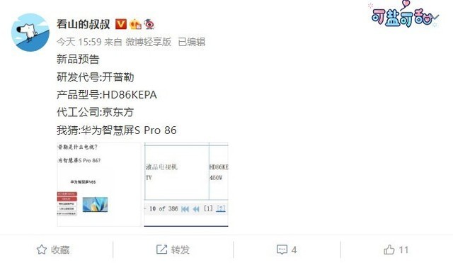 [量子点/液晶电视] 华为新款电视通过3C认证 或为智慧屏S Pro 86 |