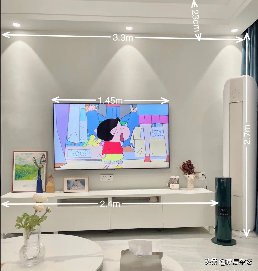选择电视的时候,大家去量一下观影距离。 也就是说,像我们的电视的位置,还有就是沙发的位置确认之后,拉一下之间直线的距离。然后根据距离去选择适合尺寸的电视机。