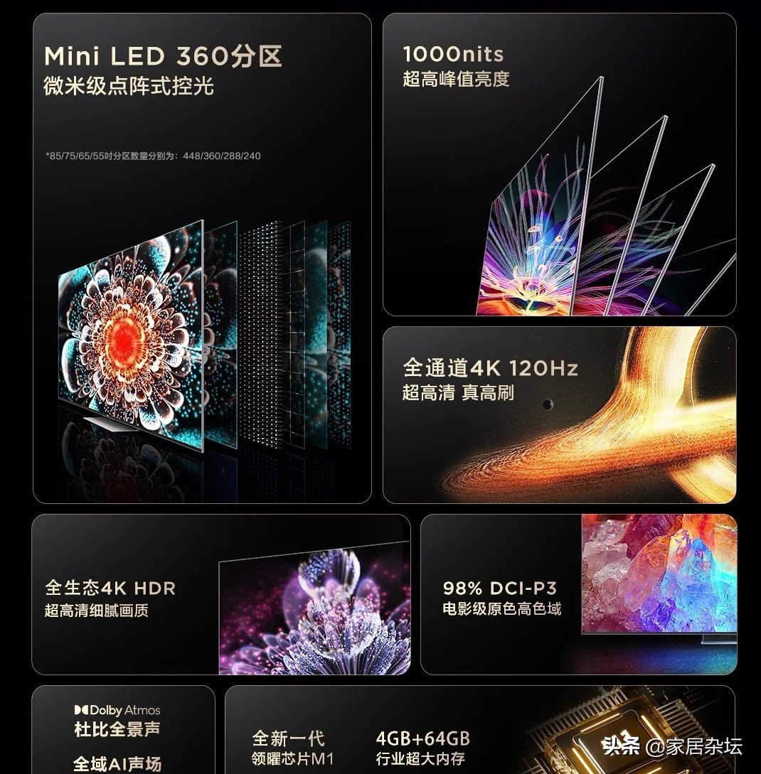 (二):背光类型的选择 背光类型分成了侧入式,直下式,分区式,还有就是Mini LED分区。效果逐次上升的。LED分区中的分区就是普通分区,背光源是普通大尺寸的LED。Mini LED分区背光源是微米级Mini LED。