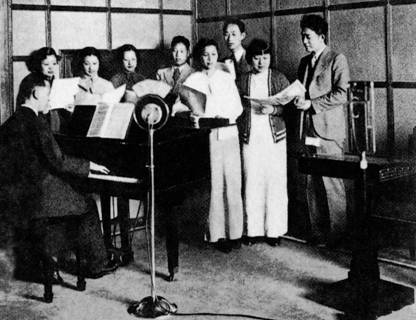 图注:老上海电台演播室内现场录制节目的场景,上海档案馆