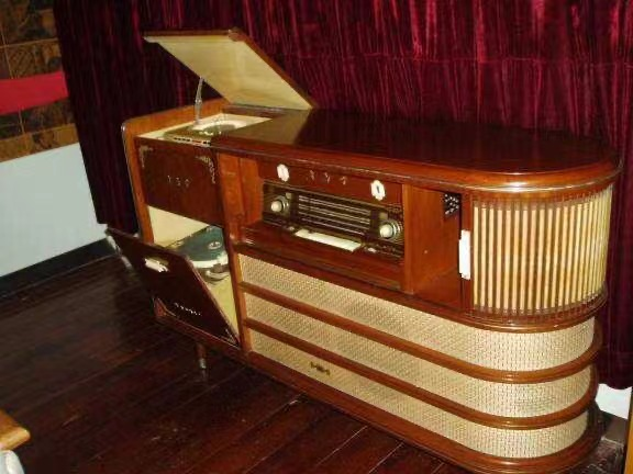 图注: 上影厂博物馆收藏的三四十年代台式电子管收音机,戴辉摄