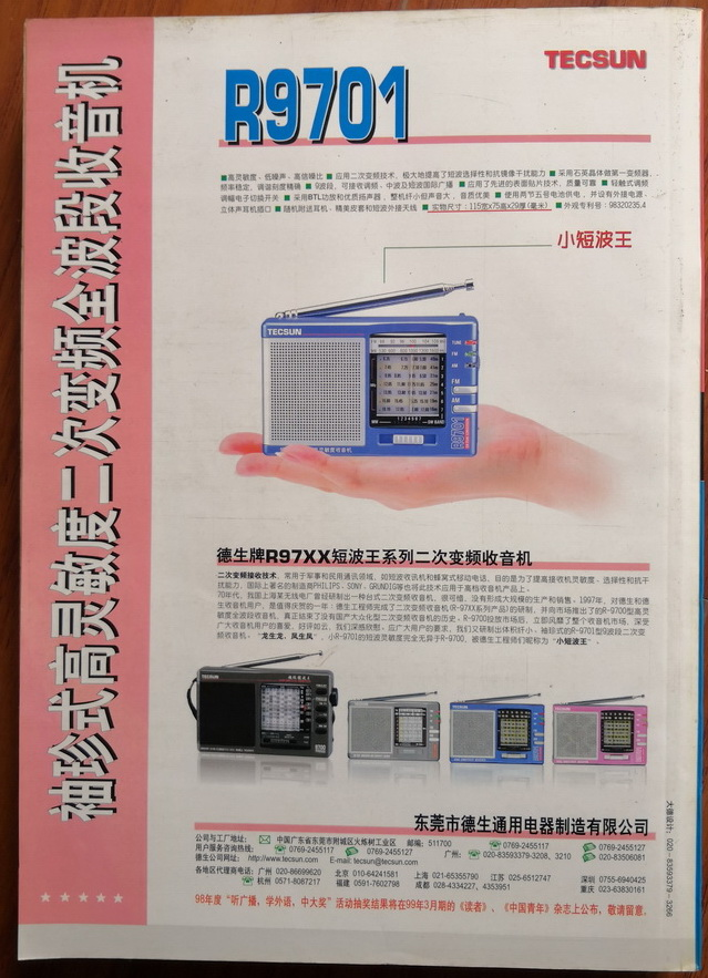 德生在《读者》杂志上大作广告,董事长梁伟表示40%的购买者是看了《读者》广告而买的。鼎盛时期,号称曾占据全球10%的市场份额,曾年产量超过500万台,在国内中高端产品的市场占有率高达70%。 90年代末,技术革命相继爆发,VCD、CD、光盘等光存储介质进步,互联网出现,手机出现,MP3出现,使得传统的收录机和收音机市场逐步下滑。