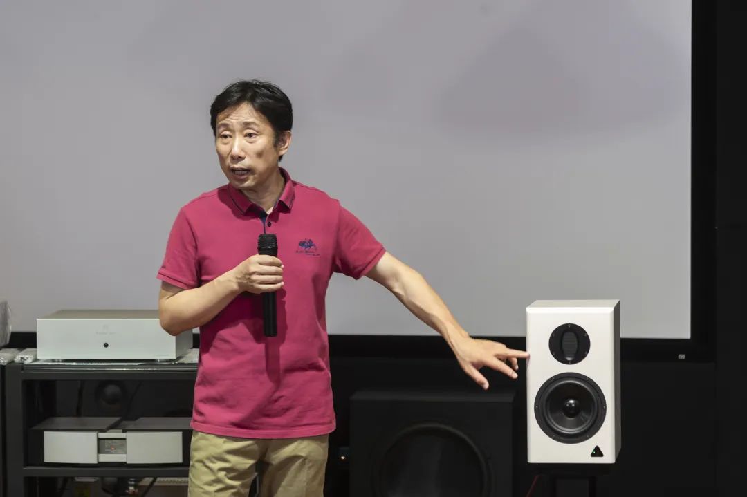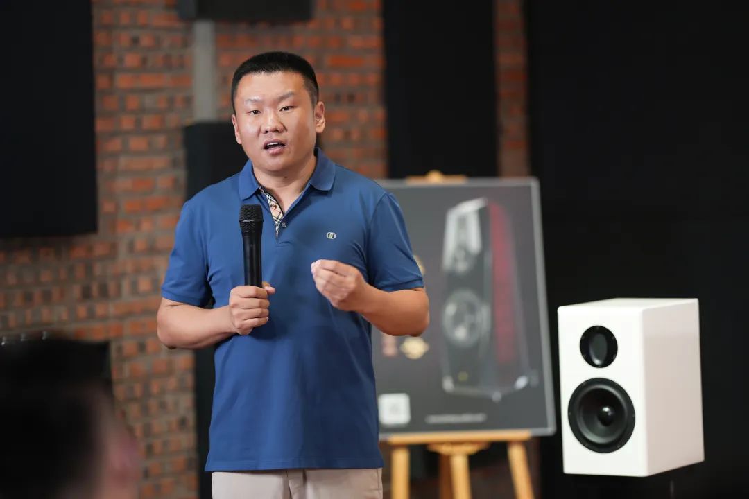 金瑯音响陈总为了本次发布会达到完美效果,提前到现场针对听音环境进行调试、摆位,与家电论坛主编吴总商讨活动流程。活动中陈总对金瑯音响的业务发展和声学技术进行了介绍,尤其是自研扬声器单元和DSP音频处理技术上的优势。包括: - 自主开发的铝带高音、气动高音、钢琴烤漆工艺目前处于全球顶尖水平,被全球众多发烧音响品牌使用;