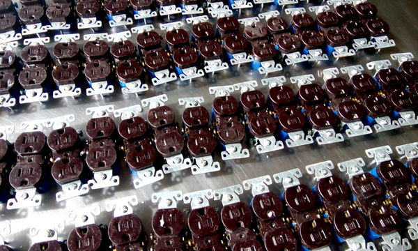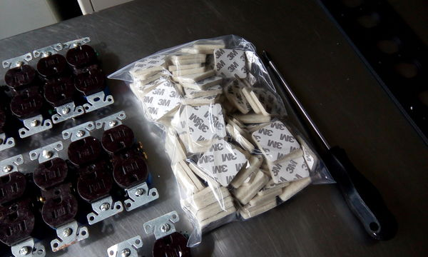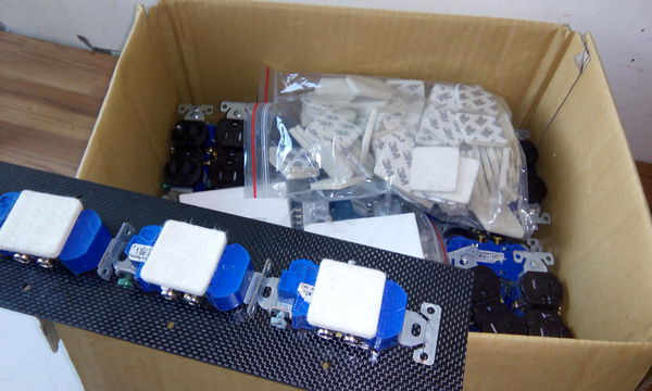 试听比之前1.2mm细铜线声音更加饱满! 既然每人都听得出差异~那我想不外乎是电感效应...互抵磁场,并可增加电流反应??? 开始备料20套---看到不错的排插座~分两次买了100颗回来 这插座有安全构造设计,插头一拔开,有绝缘塑料自动遮挡住电源洞口---还有!!!便宜啊~