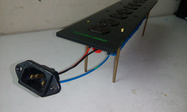 先试音听听 效果明显,连LM3886也听起来有管扩般的Q弹感,低频下沉不肥不拖,背景漆黑,深度感极佳,用耳机听也有效果! 现在剩下等网友帮忙做外壳啰~ 也可以用花更少钱的方式;买2mm粗的太平洋电缆,如法泡制,换装原有的排插,一样有大跃进。