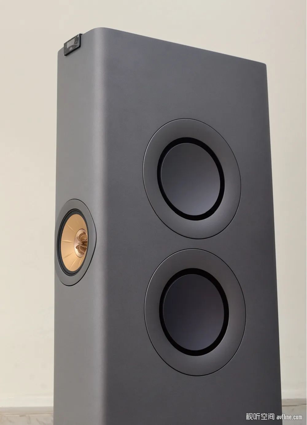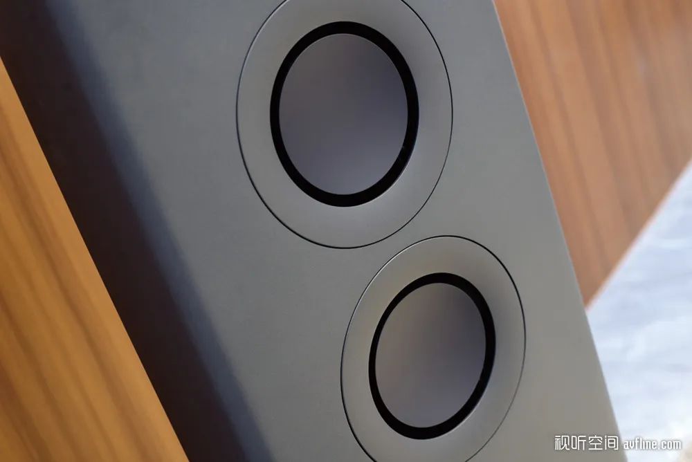 低音单元成对背靠背组装在箱体两侧,围绕Uni-Q单元阵列组成一个紧凑对称的结构,组成全域共点的单元排布