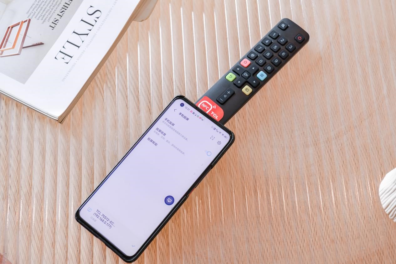 还有之前使用其他电视进行投屏,都是需要电视与手机下载相同的投屏软件才能实现,而TCL S12金标剧院电视支持NFC一碰即投功能,手机开启NFC功能并贴近NFC卡,就能快速投屏。简单的两个步骤就能完成投屏,小屏幕秒变大屏幕,使用非常方便。
