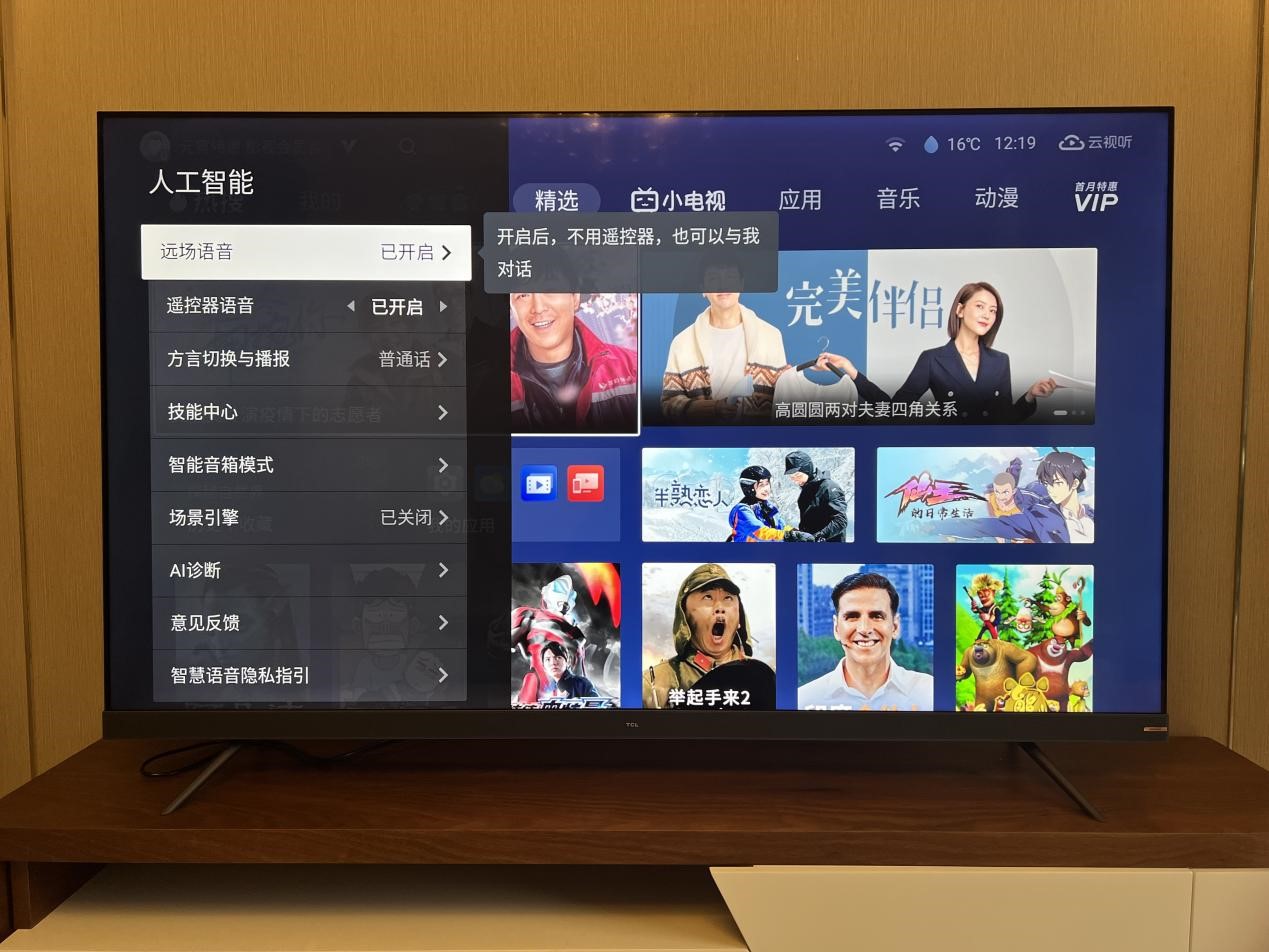 作为一台智能电视,它当然还支持语音操控,遥控器上有语音唤醒按键。另外对着电视喊出“小T小T”也能唤醒语音助手,通过语音操控音量增减、开机关机、全场景的语音唤醒确实方便,支持八种方言,对方言习惯的老年人也很友好,有了这个功能就可以告别想要开、关机时寻找遥控器的烦恼了,实现了真正地解放双手看电视。