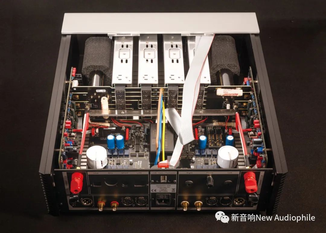 与2012年推出的体积大得像小茶几的Soulution 530 旗舰合并放大器相比,Soulution(登峰)330的体积和重量都“低调”很多,却完全移植了530旗舰机把5系列前后级装进一个机箱的做法。Soulution(登峰)330等于是把325、311前后级装进一个机箱中,前后级线路完全独立,电源线路、模拟线路与控制线路分别做了屏蔽,减少线路间的互相串扰。