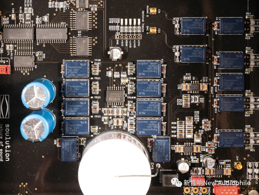 我们看到Soulution 330合并机背后预留了两个可安装模组的位置供用户选购升级,左边DAC预留位置提供了USB、AES、SPDIF、LAN等数码输入,右边是唱头放大器预留位置,用户可选购唱头放大器,选购数码\模拟模组后,一台纯音频放大合并机即可变成多功能放大器,一机就支持数码\模拟多种讯号源。Soulution 330的音量控制使用高精度低噪音的金属薄膜电阻,调整音量的时候哒哒哒的响声非常过瘾。