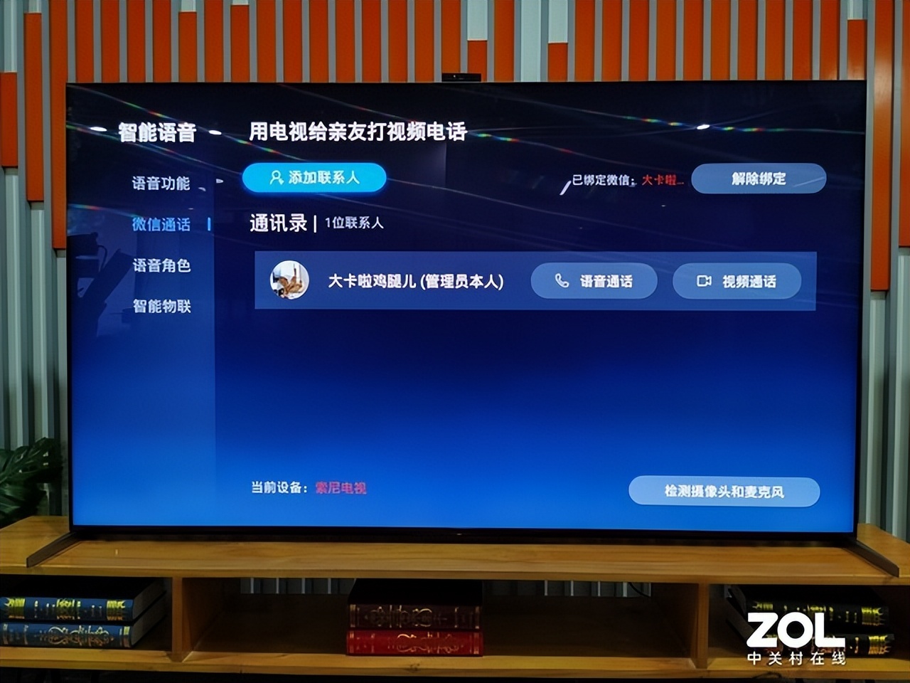 索尼75X95EK电视一个相当厉害的配置就是它搭载了一个磁吸式摄像头,除了视频通话、AI健身、体感游戏等市场对于摄像头常规功能的定义,这款摄像头还服务于使用者的音画体验——AI环境感应调节Pro功能。