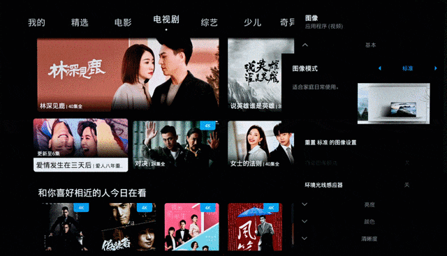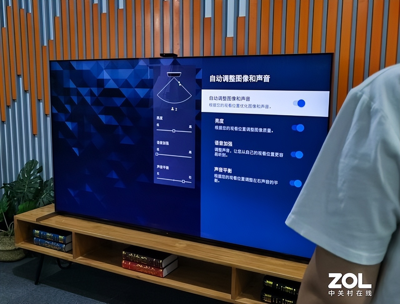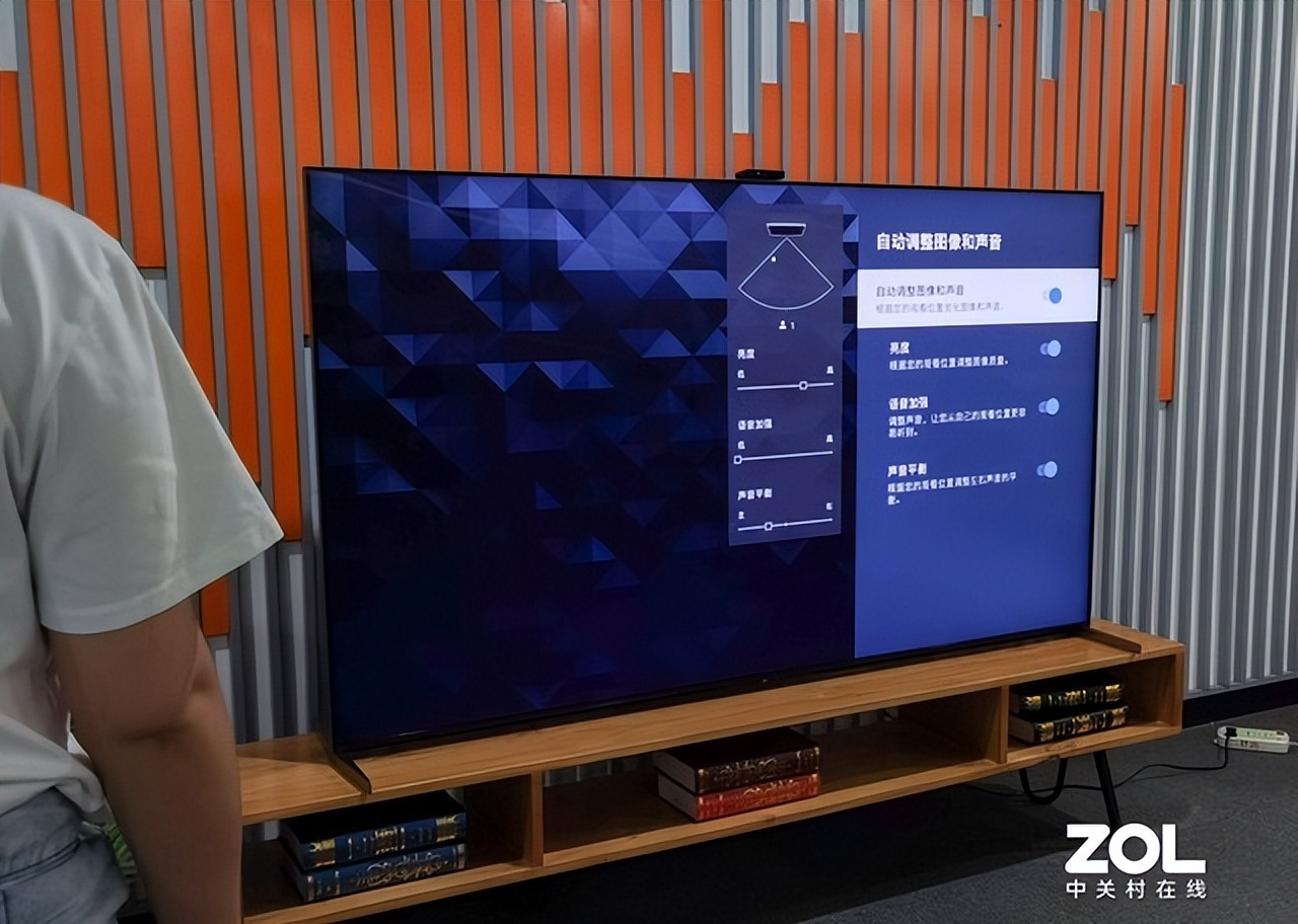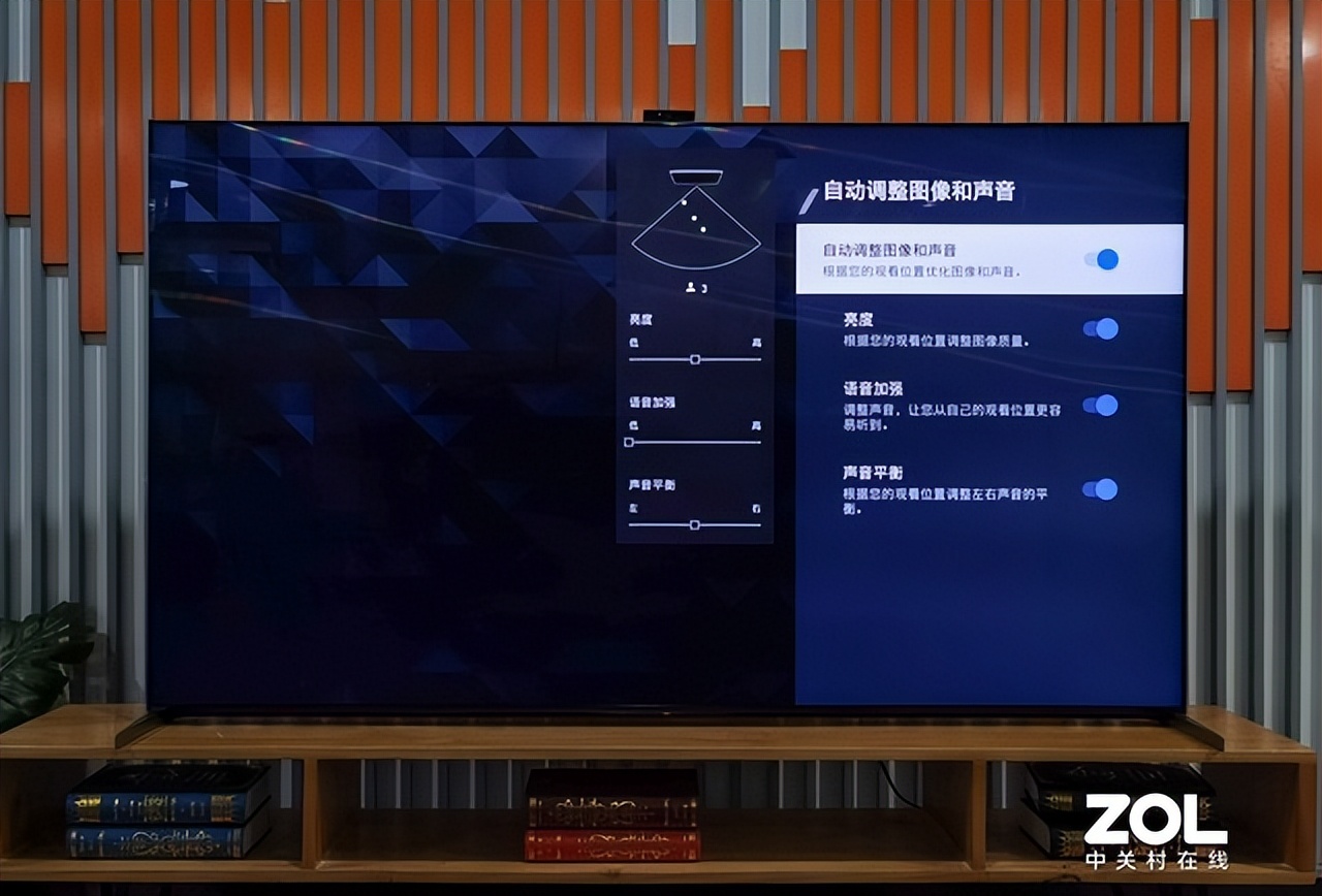 测试过程中,当我们与电视的距离产生变化时,电视同时能自动调节亮度与人声音量,以更好地贴合用户的使用体验;而当我们在电视的两侧分别观看时,电视则可以根据观看角度,自动调整左右声道的延迟与均衡性。所以不管用户坐在电视机的哪个方位,都能通过AI环境感应调节Pro功能将音画调整为最佳状态,让声音与画面更为和谐。