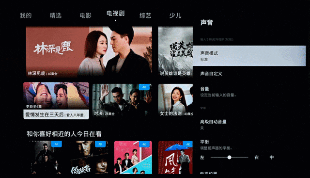 提供了多种声音模式选择,甚至电视不同的摆放位置也提供了对应的音频匹配
