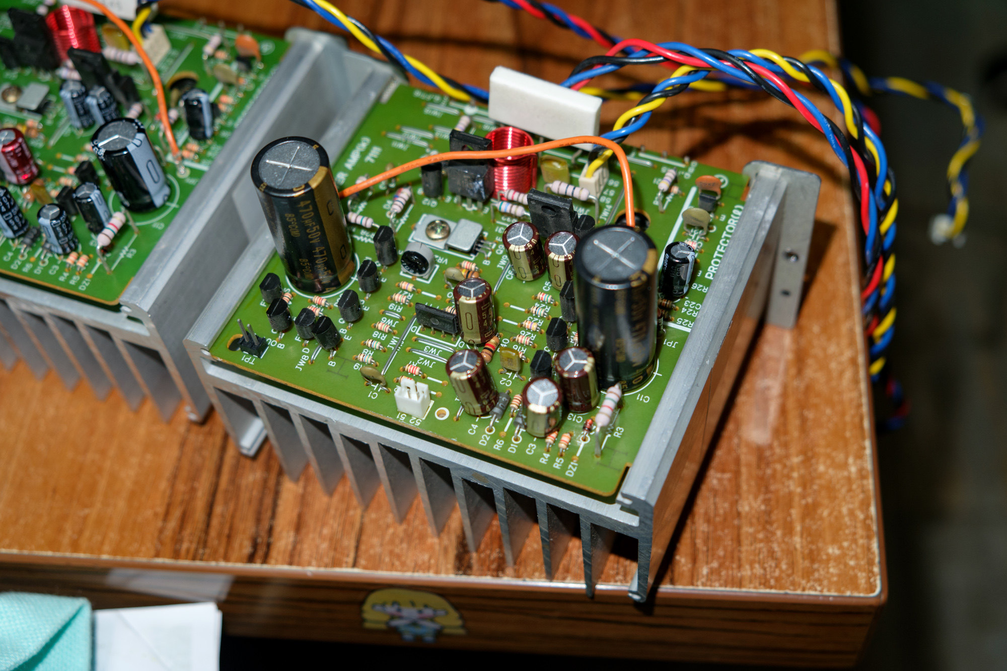 两块巨大的铝散热片将功放小板和电源主板隔开,减少了干扰,散热在28CM小功放中做得应