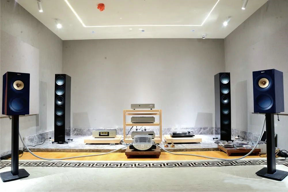 现场将R3 Meta摆放于房间大概1/2深度的位置,与聆听位几乎形成等边三角形,两只音箱内拗,让听者能听到更多的直达声。如此摆位对于声音不怎么偏亮的KEF音箱来说,应该不会有刺耳的声音,甚至还能获得快速干净的低频与清晰的中高频。