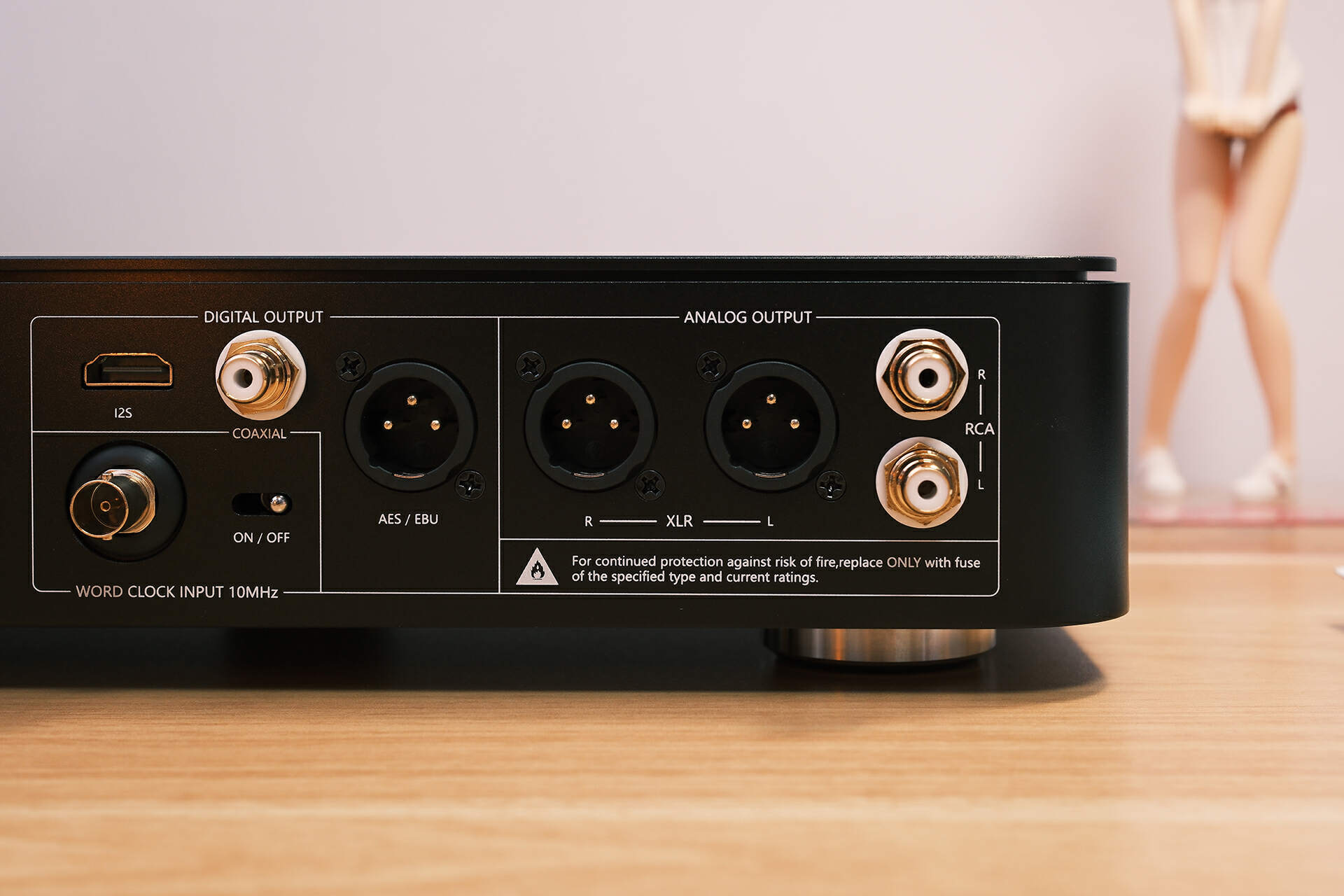 仙籁MU解码数播一体机的接口也是相当丰富,从左到右依次为AC电源、电源按键(短按开机、长按2秒以上关机)、12V DC 直流电输入、USB2.0*2、USB3.0*2、千兆LAN口、可连接仙籁其他设备的SA-Link、地盒接入口,数字音频输出包括I2S(Inter-IC Sound)、同轴、AES/EBU,时钟接入及开关,最右侧则是模拟输出包括XLR卡侬口、RCA莲花口。