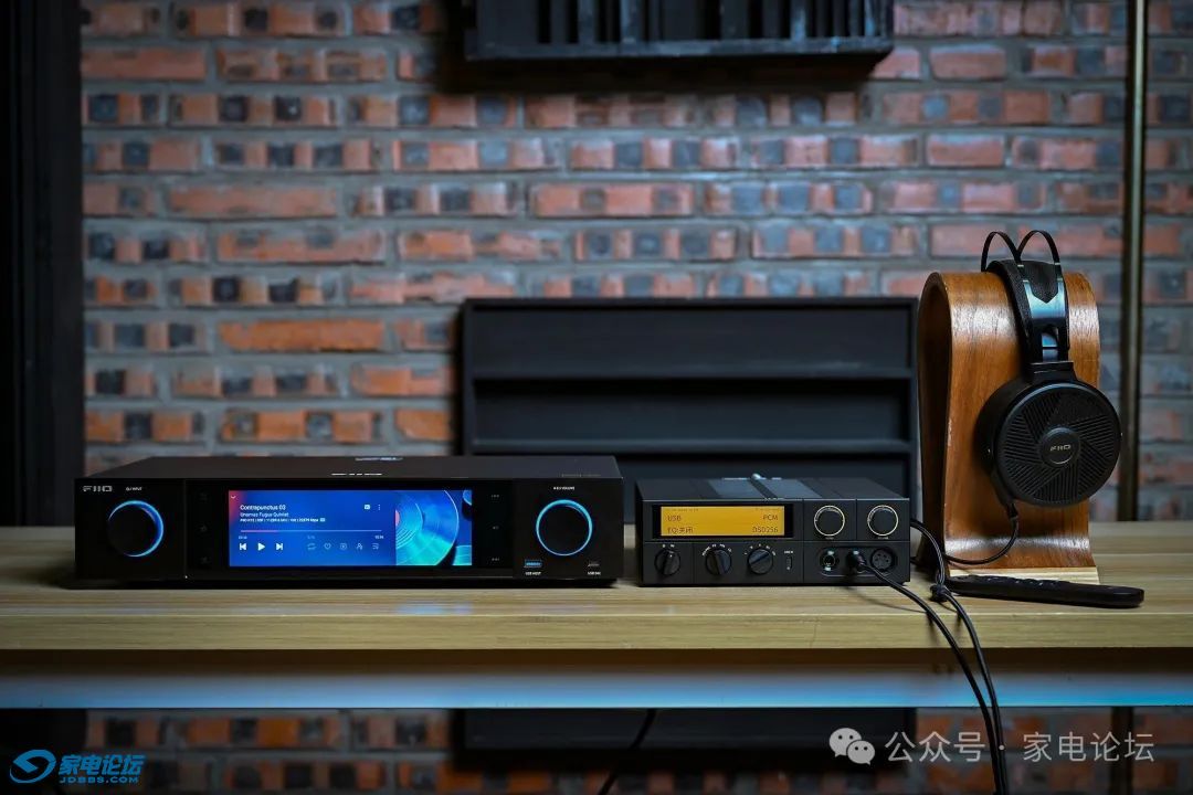 飞傲 S15 是我们今年测评中性价比最为突出的一款台式数播,与 K15 同属中端定位,二者在外观设计上存在诸多相似元素,摆放在一起毫无违和感。得益于两款设备均内置解码功能,我们得以尝试两种不同的搭配方案:一是由 S15 输出数字信号至 K15;二是将 S15 解码后的模拟信号传输给 K15,此时 K15 仅作为耳机放大器使用。测试选用的耳机是飞傲首款平板振膜大耳 FT5,这款耳机不仅热销,同样性价比极高。