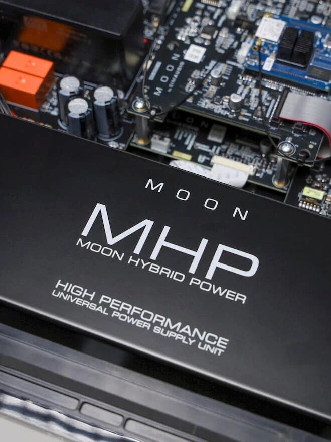 行业领先的技术:源自 MOON 旗舰 North 系列的专有 MHP(MOON 混合电源)和 MDCA(MOON 失真消除放大器)技术确保了卓越性能。MHP 电源为电路提供超稳定电力,而 MDCA 则能几乎消除失真并改善线性度,提供异常纯净、动态且准确的声音重放。