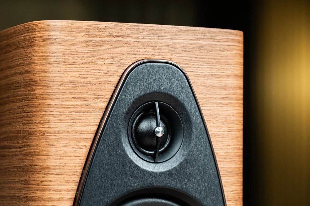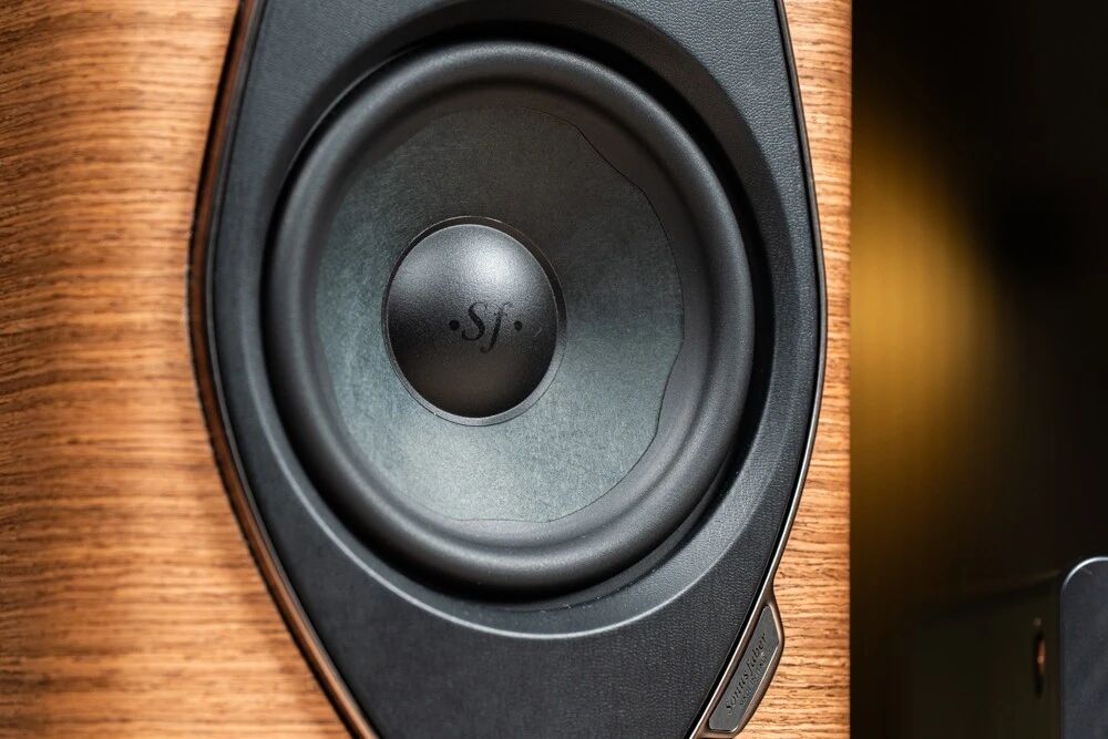 既然说到了单元,我们就来看一下这两颗单元。Sonetto I G2 使用一颗 1.1 吋的软半球高音,前方还有由上而下跨过的一道弓箭状导波器,原厂称这个是 DAD Arrow Point,也是这些年来 Sonus Faber 音箱上共通的设计之一。下方搭载一颗 5 吋的三明治振膜中低音单元。这个低音最特别的地方就在于悬边黏贴于振膜的边缘,做出了花瓣状的曲线,比起一般的环形边缘,可以提升整体声音的线性程度,还可降低干扰并进而改善声音的扩散性。这便是师法旗舰 Supreme 的设计。